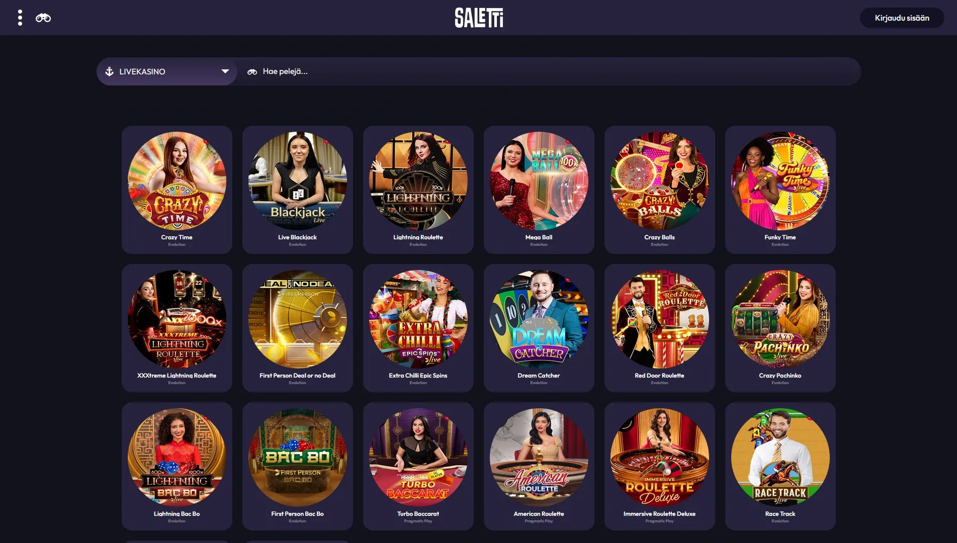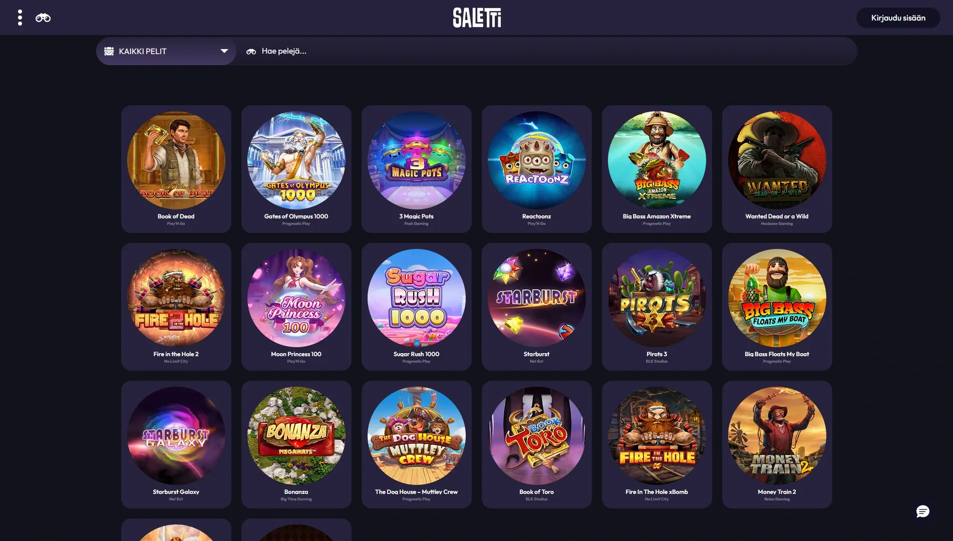 Saletti Casino on suomalaisille tehty, selkeän tyylikäs nettikasino, jossa homma lähtee käyntiin helposti ja turvallisesti Trustlyn kautta. Aktiivisille pelaajille tarjolla on myös VIP-/uskollisuusohjelma päivittäisine palkintoineen, ja pelivalikoima on isompi kuin keskiverto karkkikauppa.
